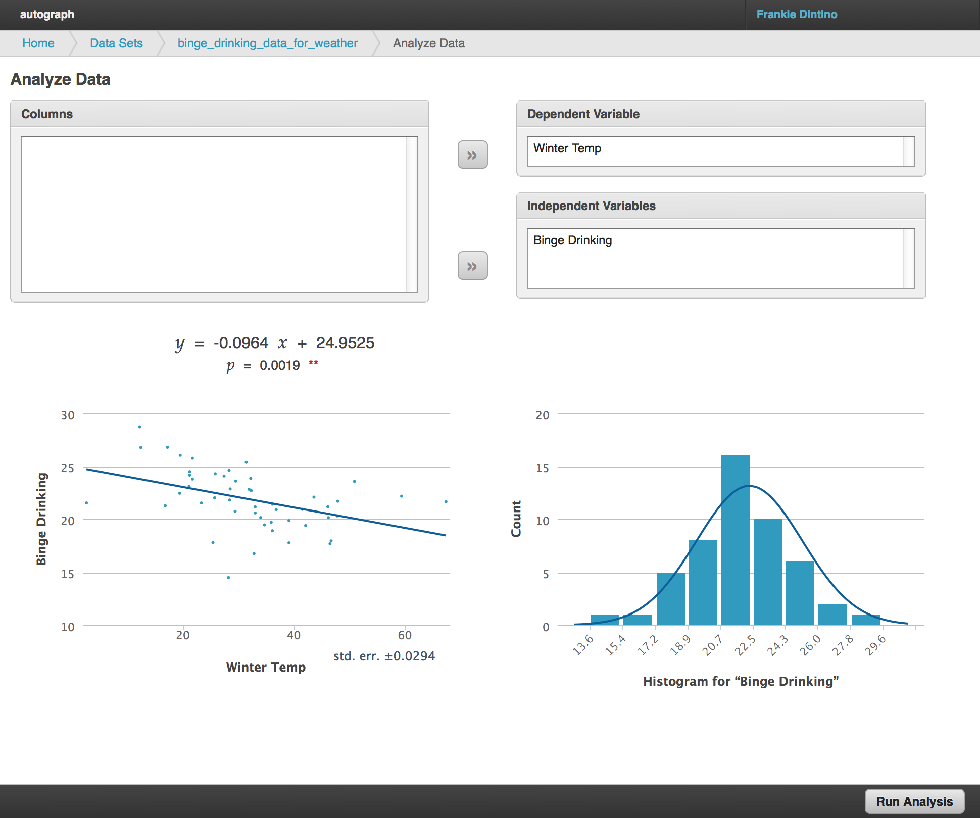 Autograph allows for basic regression analysis and normality testing