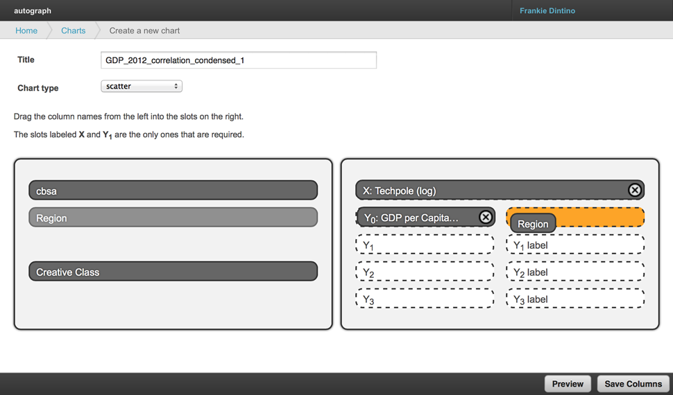 The interface for choosing the chart type and columns to use for the chart.