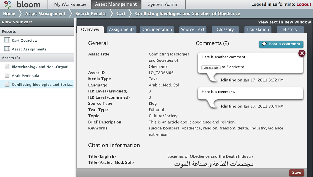 At the time I left, Bloom provided for the entry and storage of authentic source materials in 46 languages. These source materials, or "assets," are solicited from consultants across the globe who are charged with finding and uploading high-quality text and audio content. These "assets" are then sent through a rigorous QA process before eventually being used to create activities for language instruction and language proficiency assessment.