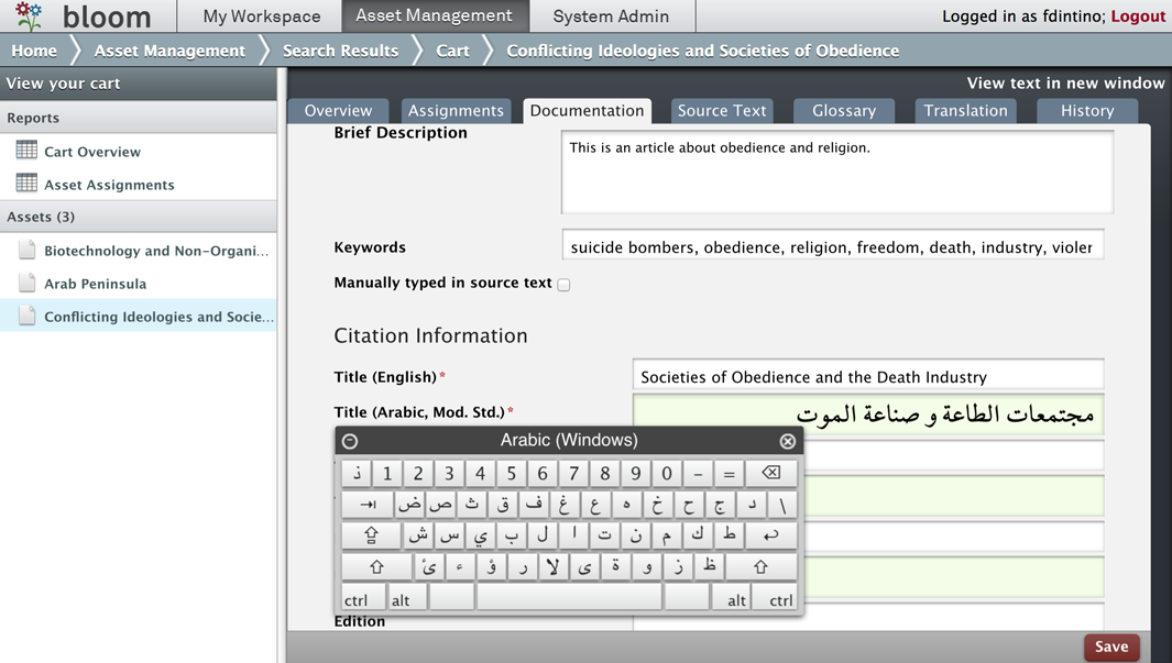 Editing a text in the Bloom content repository